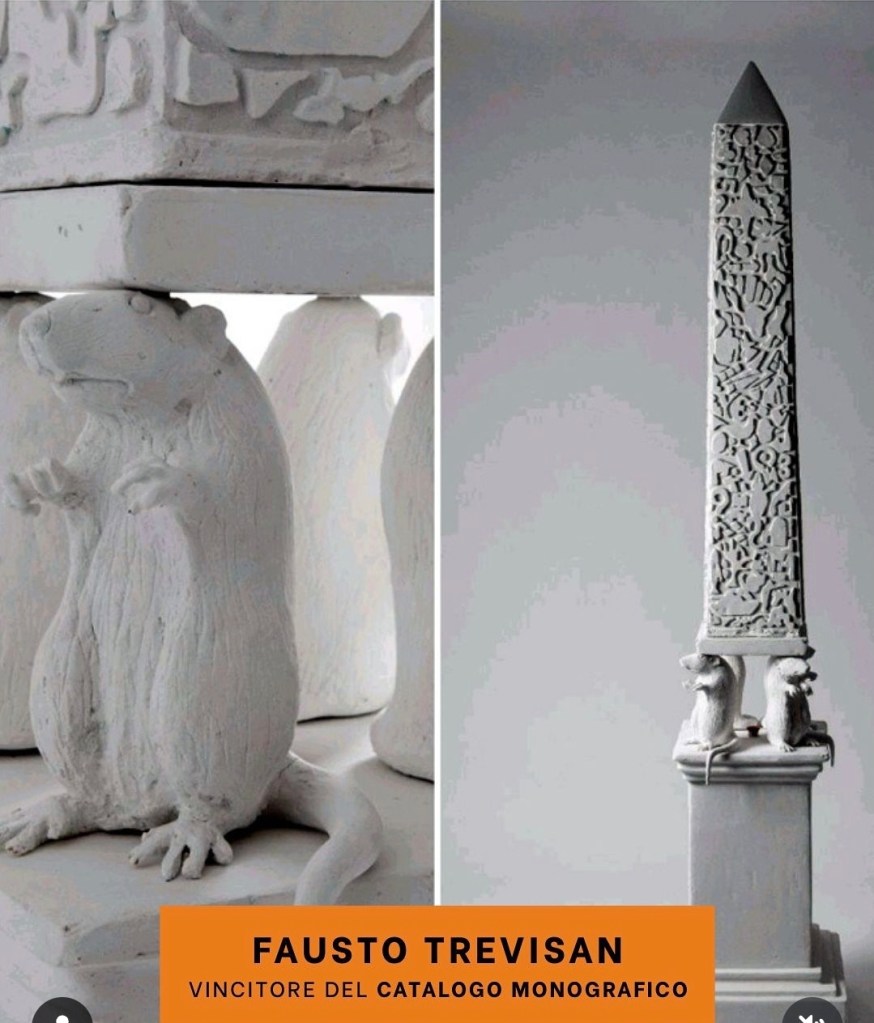 Questo obelisco mantiene il mistero di una narrazione tutta da decifrare, esibita sulle quattro facciate. È la storia dell’umanità: un intreccio di gesti, azioni, accadimenti e protagonisti che hanno riempito ogni spazio da allora fino ad ora! I topi rappresentano la parte umana più silente e schiva, quella che opera di nascosto senza farsi notare, quella che regge il peso di una coscienza appesantita da ingiustizie sociali e guerre fratricide, esempio di abnegazione e risolutezza!
