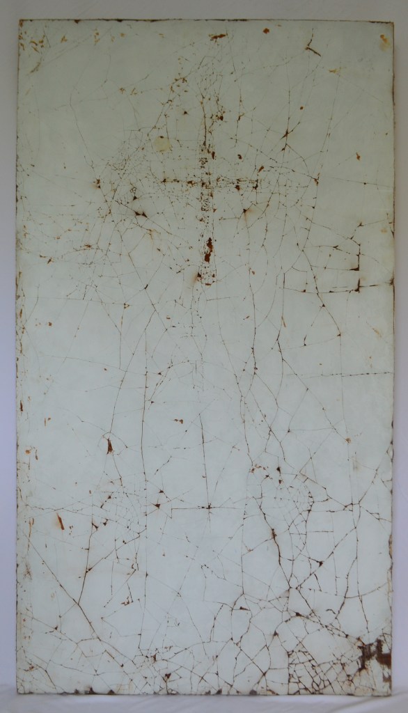Con lo step successivo abbandono gli oggeti e mi focalizzo su campiture e spazzi, che genero con manovre dirette sul sottile strato di gesso che poi fisso e tingo con colori acrilici.